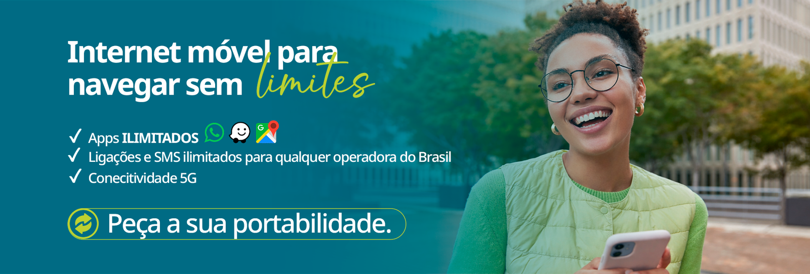 *Google Maps, Waze e WhatsApp Ilimitado sem descontar da franquia exceto para chamadas de áudio e vídeo.